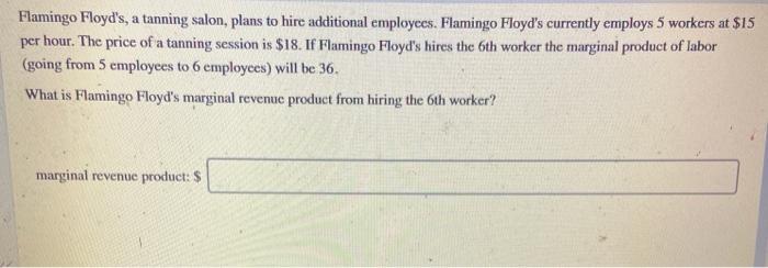 Solved Flamingo Floyd S A Tanning Salon Plans To Hire Chegg Com